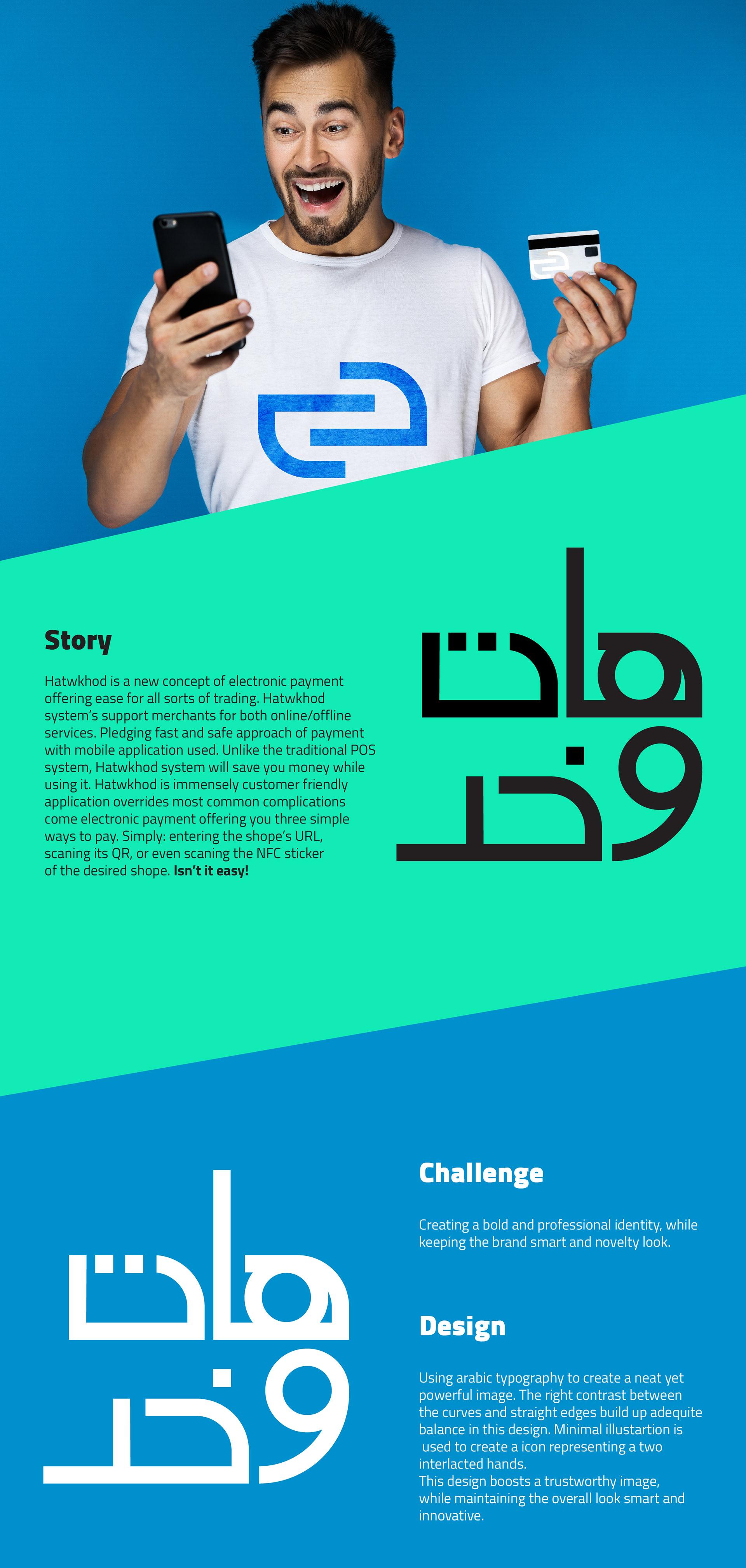 A corporate identity for Hatw5od, an innovative electronic payment system starting up its operation in July 2019. This project includes Logo design, identity guidelines and social media art direction.